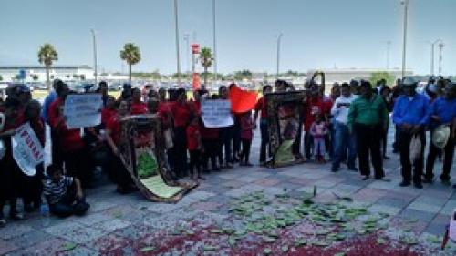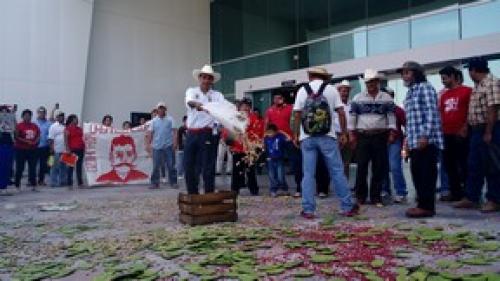 Cd. Victoria, Tamaulipas.-La centena de productores de varios municipios de la zona centro del estado, integrantes de la organización Emiliano Zapata, se manifestaron este día en la Torre Bicentenaria para solicitar la renuncia del Secretario de Desarrollo Rural Carlos Solís Gómez, por nepotismo e ineptitud.