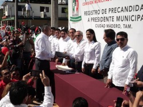 Madero, Tamaulipas.-El actual secretario general de la sección uno del sindicato petrolero, Humberto Oliva Barreda acompañado de la militancia, simpatizantes, dirigencias, organismos adherentes, líderes, Diputados Federales, legisladores locales, sectores obrero, popular y empresarial; ex-alcaldes, ex- legisladores y miembros de la clase política de Ciudad Madero; acudió en tiempo y forma a la sede del Partido Revolucionario Institucional maderense, para solicitar su registro formal como precandidato a la Presidencia Municipal de Ciudad Madero.