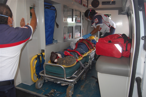 Al lugar de los hechos arribaron socorristas de la Cruz Roja delegación Tampico-Altamira, quienes de inmediato lo trasladaron al Hospital General de Tampico “Dr. Carlos Canseco”, donde su estado de salud se reporta como grave debido a que perdió mucha sangre en la pierna que casi le fue cortada.