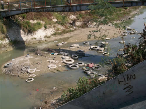 Reynosa, Tamaulipas.- Un grave peligro para la salud representa el canal Rhode de Reynosa, al estar invadido de miles de neumáticos, basura y desechos, en varios sectores de este cauce que cruza toda la ciudad; los menores de edad y familias que habitan los alrededores son los más afectados y solicitan la urgente intervención de las autoridades correspondientes, con el propósito de acabar con este foco de infección.
