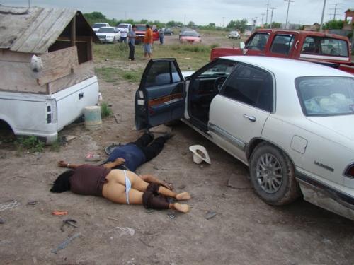 Junto a los cadáveres fue encontrado un auto Buick Le Sabre de color blanco, modelo 1992 aproximadamente con las placas de circulación W31-VPF de Texas, en cuyo interior había una caguama a medio consumir, ya que ahí es un yonke denominado “Rivera”.