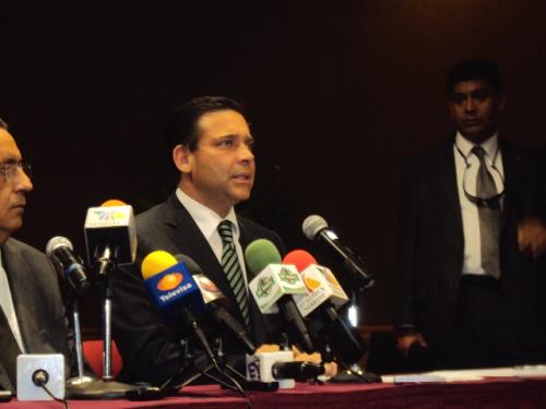 Acompañado del secretario de Gobernación, Fernando Gómez Mont, con quien efectuó una conferencia de prensa conjunta la noche de este lunes en la capital del estado, el mandatario solicitó a la federación reforzar aún más la vigilancia y seguridad en la entidad.