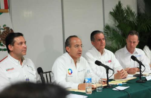 Reynosa, Tamaulipas.- Durante su estancia en Tamaulipas en escala rumbo a Nuevo León, el presidente de México, Felipe Calderón Hinojosa ofreció el respaldo de la federación en las labores de restitución y reparación de los daños ocasionados tras las inundaciones y lluvias generadas por el paso del huracán “Alex” la semana pasada.