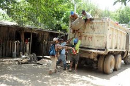 En la colonia El Remolino, uno de los sectores más cercanos al Río Bravo, un grupo de trabajadores apoyados en una flotilla de camiones de volteo, efectuaron las labores de saneamiento.