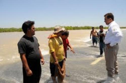 En recorrido de supervisión realizado en el kilómetro 60 de la Carretera Monterrey-Nuevo Laredo, el Presidente Municipal Ing. Ramón Garza Barrios constató que el Río El Salado va cediendo poco a poco en su nivel.