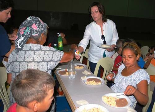La trabajadora social del municipio, María Esther Camargo de Luebbert, en forma permanente realiza recorridos por los albergues para verificar que las familias tengan lo necesario, incluso personalmente aplica gel antibacterial manteniendo las medidas de higiene y colabora en la entrega de los alimentos.