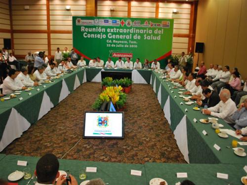Información.- El Gobernador de Estado, Eugenio Hernández Flores, llevo a cabo en la ciudad de Reynosa, la Reunión Extraordinaria del Consejo General de Salud, donde los alcaldes fronterizos, entre los que participa el presidente Roberto Benet Ramos, estuvieron presentes para tomar las medidas adecuadas sobre la alerta sanitaria, que surgió a raíz de los acontecimientos que dejo a su paso el huracán Alex.