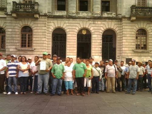 A las 08:45 horas llegaron los trabajadores a la plaza de Armas, se apostaron frente al Palacio Municipal y Teodoro Escobar Mendoza, dijo que Juan Tarimas debe ocuparse de que haya medicamento para los trabajadores, no en molestar a sus compañeros, por eso pugnarán para que a todos los reconozcan en ese gremio.