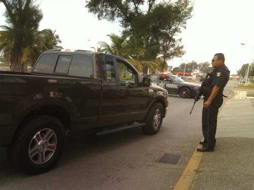 Y fue a las 12:25 horas cuando llegaron 4 camionetas más del ejercito con 7 elementos cada una y tres vehículos de Marinos, que acudieron a revisar el área de las pistas; mientras que personal de seguridad privada revisaba los vehículos.