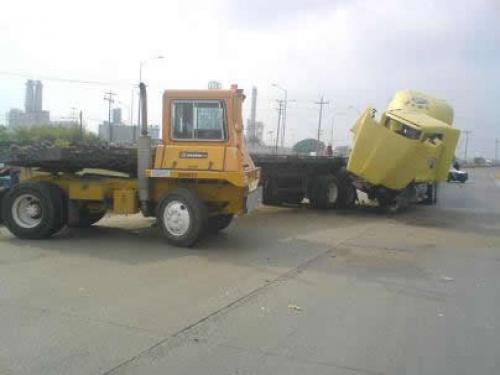 Altamira, Tamaulipas.- El fuerte choque entre un tractocamión de doble plataforma y una unidad especial para el manejo de contenedores, provocó el cierre a la circulación sobre el Boulevard de los Ríos durante aproximadamente una hora, lo que generó largas filas de vehículos.