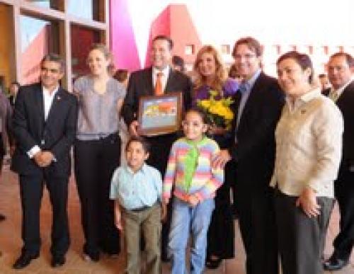 Finalmente el gobernador y la señora Adriana, entregaron un reconocimiento al Presidente de la Fundación Teletón México, Fernando Landeros Verdugo por su amplio apoyo para la realización de este sueño que representó la cristalización del CRIT en Tamaulipas.