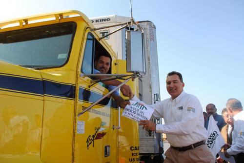 Por otra parte, en las casetas del Puente Tres, el Presidente Municipal Ramón Garza Barrios y el secretario de Desarrollo Económico y del Empleo en el estado, Abelardo Saldívar Fitzmaurice, felicitaron al señor Carlos César Escobedo López, de 41 años de edad, operador de la empresa Transportes Quintanilla, quien a bordo de su unidad número 12 arribó al puente en calidad de “vacío” con destino a la ciudad de Laredo, Texas, convirtiéndose de esa forma en el cruce número 12 millones.