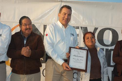 Por su parte Evelia Álvarez Sequera, en representación de los vecinos favorecidos, entregó un reconocimiento al munícipe, por las distintas obras de bienestar social, como esta plaza, el alumbrado público, la pavimentación y los puentes vehiculares entre otras acciones.