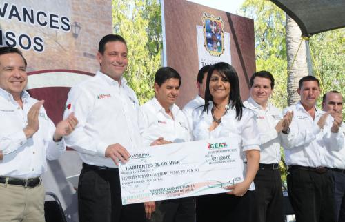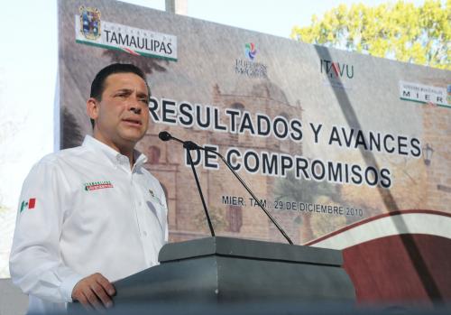 MIER, Tamaulipas.- Para dar seguimiento a los acuerdos y acciones emprendidas en este municipio hace 23 días con el Secretario de Gobernación, el gobernador Eugenio Hernández Flores realizó una gira de trabajo, la cual reforzó con la entrega de recursos superiores a los tres millones de pesos para la rehabilitación de viviendas, de la planta potabilizadora, así como para la entrega de enseres domésticos y de apoyos emergentes por la contingencia.
