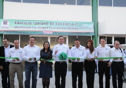 MIGUEL ALEMAN, Tamaulipas.- Durante su última gira de trabajo por este municipio, el gobernador Eugenio Hernández Flores inauguró el “Edificio de Docencia I” de la Universidad Politécnica de la Región Ribereña, así como las instalaciones de un nuevo Tamul “Lugar de Encuentro”, que con una inversión superior a los 47 millones de pesos, permitirá dar respuesta a las demandas de educación superior, así como de recreación, deporte y esparcimiento entre las familias de esta región.