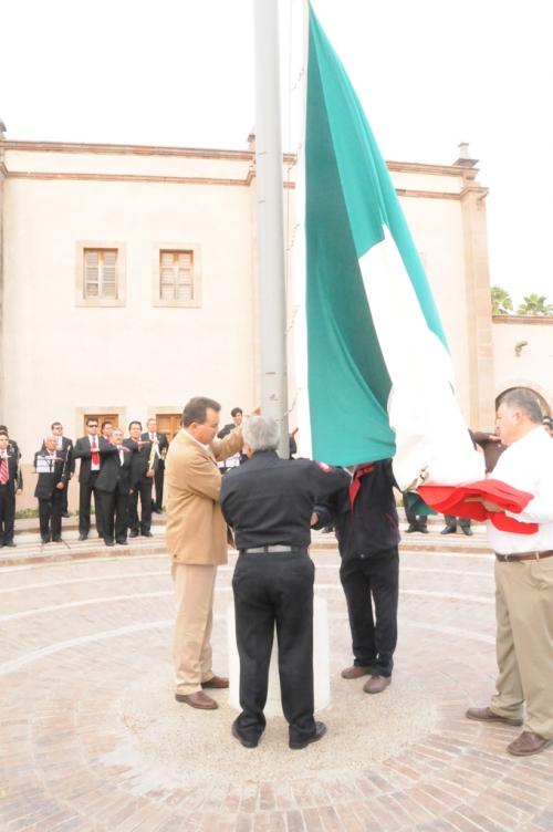 En la Plaza Cívica Municipal integrantes del Cabildo, secretarios, directores, subdirectores y jefes de departamento participaron en la ceremonia donde se izó la Bandera Nacional a toda asta y se entonó el Himno Nacional Mexicano.