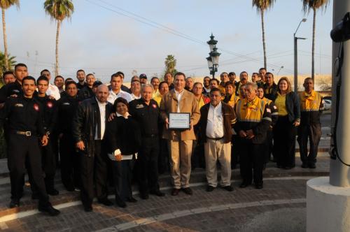En este marco, personal de Protección Civil, Bomberos y Desastres reconoció la labor de Garza Barrios, mediante un cuadro emblemático donde se plasma la gratitud de los trabajadores de esta área que recientemente fue inaugurada en sus modernas instalaciones centrales.