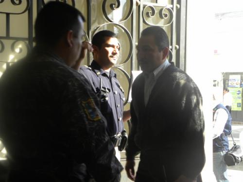 Victoria, Tamaulipas.- La entrada y salida de los cientos de tamaulipecos que a diario acuden al Palacio de Gobierno, ya no es libremente como en sexenios anteriores, ya que se ha impuesto un flitro de seguridad que desconcierta a propios y extraños,. pues hasta los trabajadores tienen que dar sus datos generales a los guardias que desde temprana hora estan en las entradas del edificio.