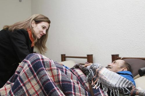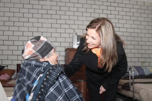 La titular del Sistema DIF hizo entrega de cobijas, guantes y calefactores, entre otros apoyos invernales a los abuelitos que viven en este centro.