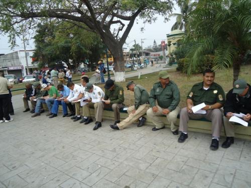 Altamira, Tamaulipas.- Tras darse a conocer la baja de 58 agentes viales, el director de tránsito en este municipio, Capitán Segundo de Infantería, Genaro Sandoval Plascencia acudió esta mañana a dialogar con los elementos inconformes en la Plaza Constitución.