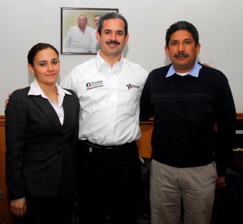 Benjamín Galván, Presidente Municipal de Nuevo Laredo, recibió este martes la visita del ingeniero Andrés Alcántara y Lizeth Nova, ejecutivos de la empresa fabricante de productos de fibrocemento, Maxitile, que ha contribuido con programas sociales en Nuevo Laredo, mediante la figura de coinversión con la sociedad, donando material para la construcción de un dispensario médico, y que se presentaron con la primera autoridad municipal para refrendar su vocación de empresa socialmente responsable.