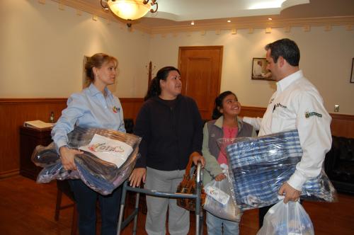 Ello ocurrió, este miércoles, luego de que Benjamín Galván y Martha Alicia, entregaran cobijas y despensa a la señora Esther Espino Cavazos quien junto con sus hijos Leonel y Blanca Keylli López Espino, encontraron respuesta inmediata a sus necesidades, lo que demuestra una vez más la sensibilidad del Gobierno Municipal ante las carencias de los más vulnerables.