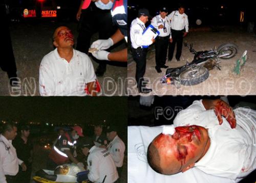 Como Telesforo Huerta Velázquez, de 42 años de edad, quien reside en la colonia Fuentes Sección Lomas, es el infortunado motociclista que se salvara de milagro y que sufriera fracturas en sus brazos, dislocación de clavícula, lesiones en sus piernas, rostro y cráneo.