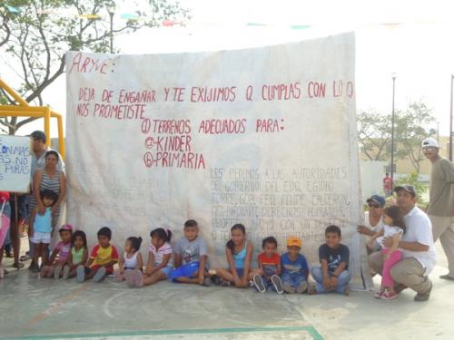 Altamira, Tamaulipas.- Al decirse engañados por la constructora Aryve, un grupo de vecinos del fraccionamiento Jardines de Arboledas protestó esta mañana en contra de esa empresa que les prometió la construcción de un jardín de niños y una escuela primaria, ya que en ese sector se estima un censo de 500 menores de edad que requieren de estudios, según lo dio a conocer José Luis Barragán, habitante de esa zona: