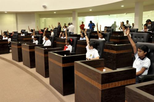 Durante la sesión legislativa los “Diputados por un Día” realizaron un ejercicio democrático, tal como lo hacen los integrantes de la Sexagésima Primera Legislatura, con propuestas de Iniciativas, que fueron leídas en la Tribuna del Congreso Local, discutidas y aprobadas.