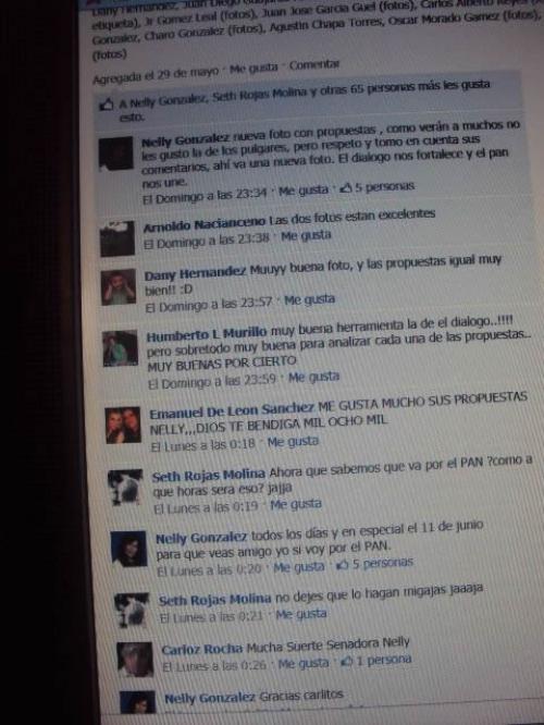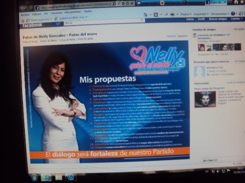 Reynosa, Tamaulipas.- Lázara Nelly González, senadora de la república y actual aspirante a la presidencia del comité directivo estatal del PAN en Tamaulipas, emprendió una aguerrida campaña de proselitismo desde las redes sociales en internet, en donde lo mismo presenta su plataforma de trabajo para su partido que responde a sus seguidores y curiosos en un chat interactivo que personalmente atiende, en donde lo mismo le hacen preguntas y saludan amigos, militantes, periodistas y espontáneos.