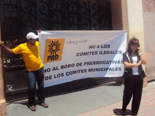 Los inconformes alzaron al aire sus pancartas y reclamos, en donde solicitaron por parte del PRD el ceso a lo que denunciaron como intromisión en asuntos de su partido.