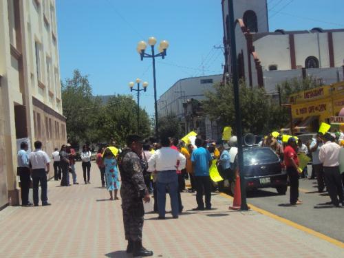 Y se fueron caminando por las calles del primer cuadro de la capital del estado para concluir en la calle Zaragoza frente al palacio de gobierno, en donde hubo necesidad de efectuarse cortes a la circulación vehicular ante el numeroso contingente que provocó el cierre frente al edificio gubernamental.