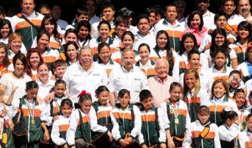 CD. VICTORIA, Tamaulipas.- El Gobernador Egidio Torre Cantú, acompañado de su esposa María del Pilar González de Torre, presidenta del Sistema DIF Tamaulipas y del director general del Instituto Tamaulipeco del Deporte, Enrique de la Garza Ferrer, convivió y desayunó con los 154 medallistas de 19 disciplinas que representaron a nuestro Estado en la Olimpiada Nacional 2011. En el evento, las ganadoras de gimnasia rítmica encabezadas por Verónica Alejandra Navarro Blizzard, ganadora de cinco preseas doradas, entregaron a Torre Cantú el trofeo de primer lugar en esta disciplina. Por su parte el Gobernador refrendó su apoyo para el deporte en todas las modalidades y felicitó a los ganadores de medallas de oro, plata y bronce, así como a sus entrenadores y padres de familia.