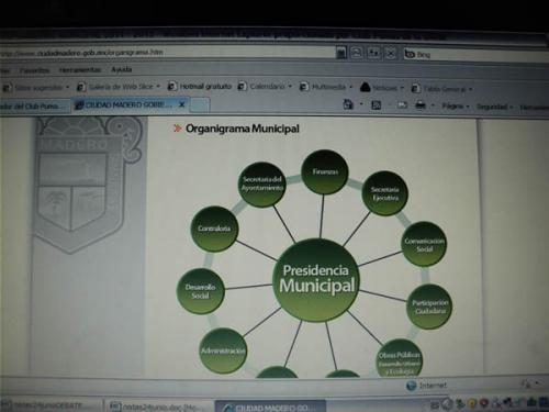 Solo hay que echarle un vistazo al organigrama de la administración maderense para observar que no está al día; un claro ejemplo es lo que se detalla en la Dirección General de Finanzas, donde aun aparece el nombre de Eduardo López Hamelius como Director de Catastro a pesar que dicha persona dejó de laborar para la administración desde el mes de marzo, (además de aparecer el segundo apellido mal escrito); misma situación ocurre en la Dirección de Alcoholes, donde aparece el nombre de Manuel Santillán Martínez, quien desde inicio del mes de abril dejó este cargo, el cual en la actualidad es ocupado por Francisco Javier Morán Gutiérrez.
