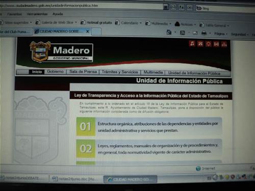 Madero, Tamaulipas.- La ley de transparencia y acceso a la información pública, es algo que todo municipio debe cumplir de una manera obligatoria, por ello es que cada ayuntamiento en el estado de Tamaulipas tiene en la red de internet un portal donde expone en una Unidad de Información Pública todo lo relacionado a lo que se hace y maneja dentro de la comuna.