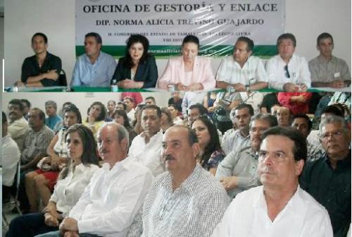 La líder Lupita Flores de Suárez, al hacer uso de la palabra, tras felicitar públicamente a la legisladora Norma Alicia Treviño, por sus trabajo y ahora al contar con una oficina de enlace para escuchar y atender las necesidades de los habitantes del distrito, estuvo mencionando a cada uno de los presentes como al licenciado Juan Alonso Camarillo, quien fue líder en el Congreso del Estado y fue inevitable destacar el nombre de Guadalupe González López por que dijo: “después se me siente”. Así como al ingeniero Pánfilo Tamez, quien apoya como buen esposo a la diputada local Norma Alicia Treviño.