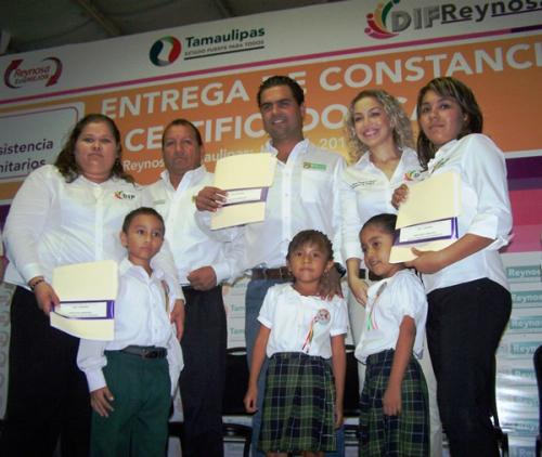 En este evento de entrega de constancias y certificados, estuvieron presentes, el alcalde Everardo Villarreal Salinas, la presidenta del voluntariado del DIF, señora María del Carmen Salinas de Villarreal y el secretario de Desarrollo Social en el municipio, Ernesto Robinson Terán.