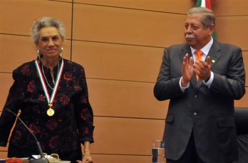 CD. VICTORIA, Tamaulipas.- El Gobernador Egidio Torre Cantú entregó este miércoles la presea “Emilio Portes Gil” a la doctora Martha Chávez Padrón, durante sesión solemne del Supremo Tribunal de Justicia de Tamaulipas. En el acto estuvo acompañado por la presidenta del Sistema DIF Estatal, María del Pilar González de Torre.