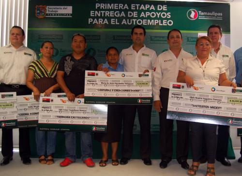 REYNOSA, Tamaulipas.- El Secretario del Trabajo del Gobierno del Estado, Raúl César González García, entregó cheques por un total de 144,933.16 pesos para fomentar el autoempleo en la región. El gobierno de Egidio Torre Cantú ha autorizado más de 40 proyectos beneficiando a emprendedores de los municipios de Tampico, Madero, Altamira, Nuevo Laredo, Reynosa, Matamoros y Vallehermoso.