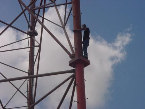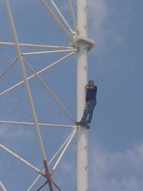 Matamoros, Tamaulipas.- Por espacio de hora y media personal de la Dirección de Protección Civil, del Departamento de Bomberos, Elementos del Ejercito Mexicano, Paramédicos de Cruz Roja, Verde y de ambulancias Life, “negociaron”, con un joven que fue rechazado por una mujer de la que esta enamorado, tras que subiera por la antena de Comunicación de Grupo Radio Avanzado en Sexta Sur y Fuerza Aérea.