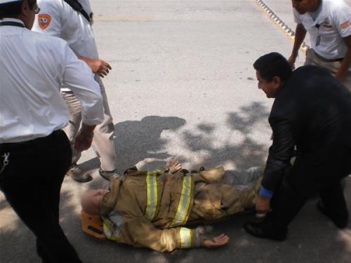 Tampico, Tamaulipas.-Un muerto y una persona lesionada fue el saldo de un simulacro de incendio de una aeronave, que se registró cuando supuestamente se derramó combustible, el cual se llevó a cabo hoy en el Aeropuerto Internacional de Tampico, en donde evacuaron alrededor de 200 personas entre personal y usuarios.