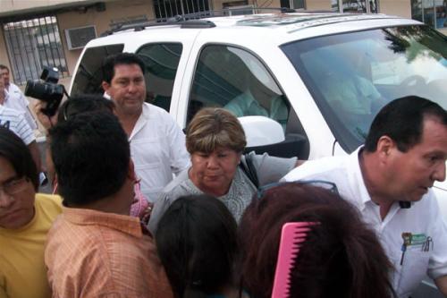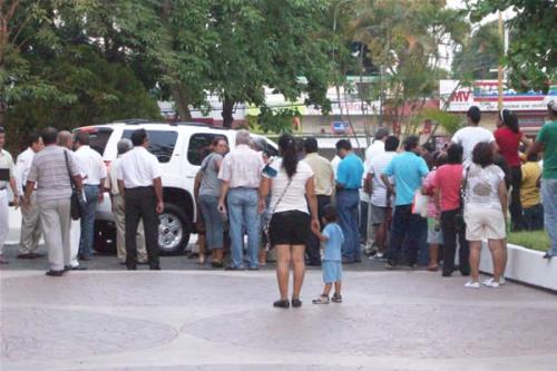 Y ante la negativa del mismo, por un lapso de 15 minutos no pudo bajar de la unidad blindada a fin deque no fuera por los ambulantes quienes ya estaban con los ánimos caldeados y enardecidos; posteriormente el personal de seguridad tras haber perdido el control escoltando a la primera autoridad, tuvieron que ser apoyados inclusive por algunos regidores, en el caso de José Luis Martínez Navarro, Gerardo Grajales, Ana Martínez, el secretario técnico Elías Ahuet entre otros empleados del municipio quienes se encargaron de hacer una valla y sacar entre empujones y jaloneos a los ambulantes para que dejaran salir al alcalde, que finalmente salió a bordo de su unidad a gran velocidad.