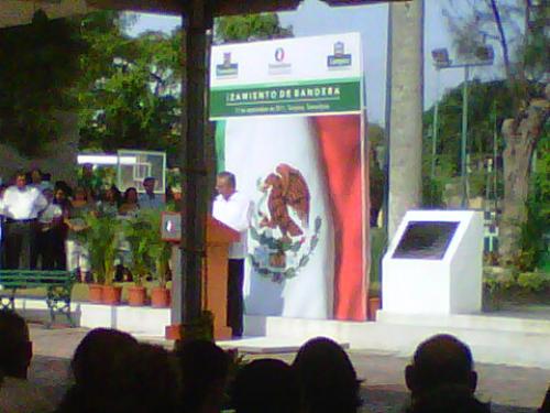 Esta mañana, en sencilla ceremonia, en la plaza “Guadalupe Victoria”, asistió el Gobernador Egidio Torre Cantú, su esposa, la Presidenta del Sistema DIF Estatal, Sra. María del Pilar González de Torre, alcaldes de la zona, diputados locales y funcionarios estatales que presenciaron la entrega del asta bandera en ese sitio, que fue donada por el Diputado Federal José Francisco Rábago Castillo, quien expresó que hoy es una fecha histórica “ Hoy somos una nación libre, a partir del presente día, todos los mexicanos conmemoraremos por Ley, siendo esta ocasión histórica en que debe izarse por primera vez la Bandera Nacional a toda asta en todos los rincones de nuestro país”.