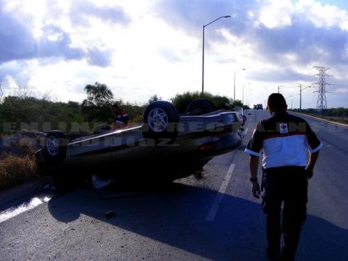 Reynosa, Tamaulipas.-Después de haberse reportado la volcadura de la unidad antes citada en la anterior información, se volcó otra unidad sobre el boulevard o Libramiento Colosio, quien su conductor viajaba a exceso de velocidad y que saliera lesionado, siendo trasladado por particulares quienes lo auxiliaron al sacarlo de su vehículo.