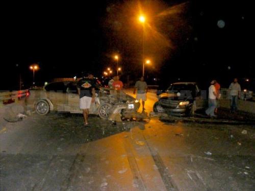 A simple vista se encontraban dos automóviles a mitad del puente elevado totalmente destruidos de la parte frontal y varias personas que eran atendidas por los paramédicos de las unidades de auxilio.