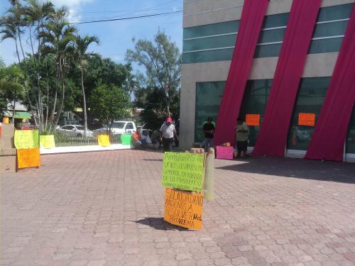 Postrados sobre cartones un grupo de comerciantes a quienes personal de la dirección de ingresos les quitó sus charolas con mercancía, decidieron instalarse desde las tres de la tarde del miércoles y pasaron la noche en este lugar, argumentando que se quedarán en este sitio hasta que sean atendidos por las autoridades, lo cual hasta el mediodía del jueves no ocurrió.