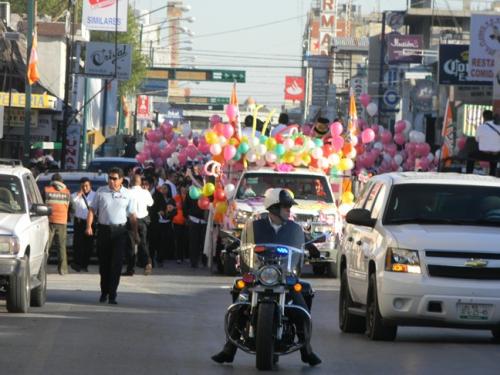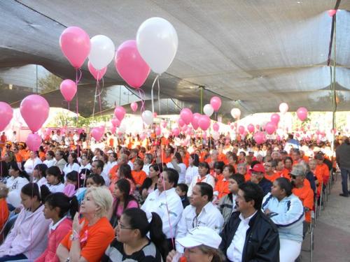 Nuevo Laredo, Tamaulipas.- Al celebrar el Día Mundial contra el Cáncer de Mama, cerca de 500 personas, la mayoría mujeres, marcharon por la principal avenida de esta ciudad, para llevar un mensaje de esperanza para quienes sufren de esta enfermedad.