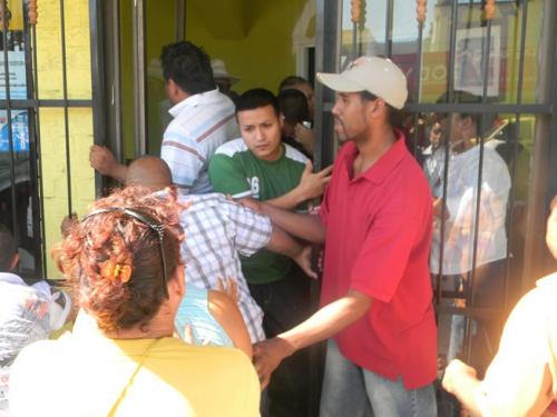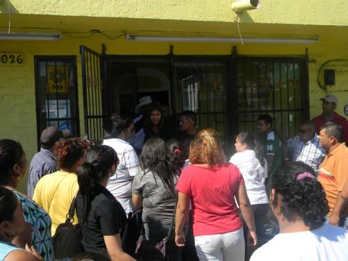 Eran unas 50 personas, algunas ingresaron al recinto, pero la mayoría se quedó afuera debido a que las puertas les fueron cerradas porque tomaron unas boletas y las destruyeron, de acuerdo a la versión de Alejandro Orozco González, dirigente local.