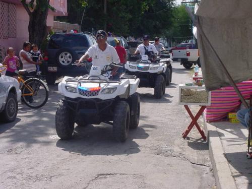 Informa que los oficiales de policía trabajan a bordo de cuatrimotos y patrullas así como con elementos desplazados a pie.