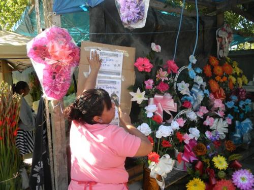 “El domingo vendó muy bien, por lo que espero que hoy y mañana venda lo mismo. Ya tengo 20 años vendiendo en este lugar que era de m i suegra”, dice orgullosa Patricia Ventura, mientras coloca en el frente del negocio los precios de las flores que vende, a la vista de los compradores.